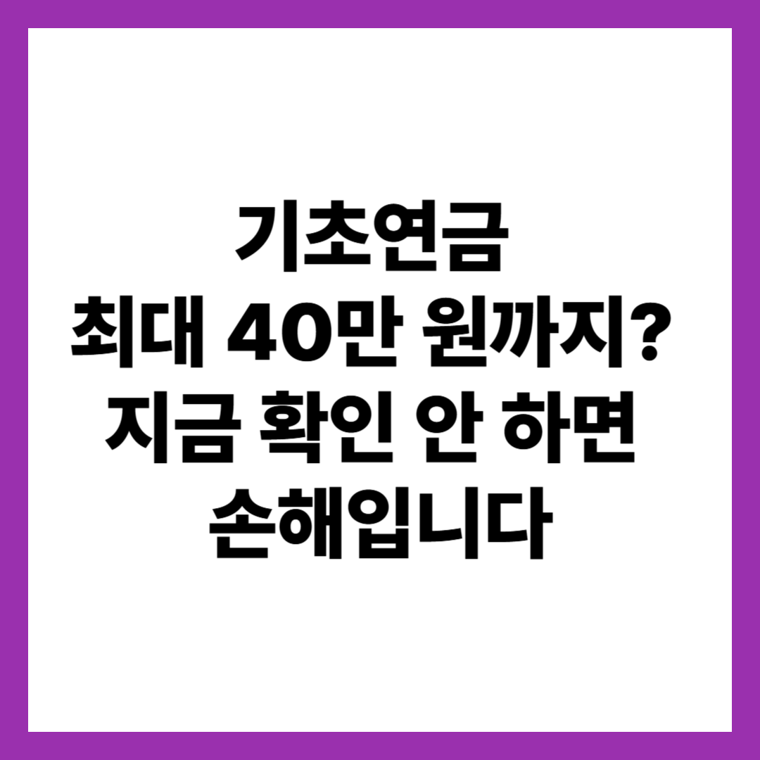 기초연금은 몰라서 놓치면 연 480만 원 손해가 될 수도 있는 중요한 혜택입니다.